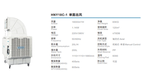 - Máy làm mát HNY18 là sản phẩm có 1 cửa hướng thối phía trên với tính năng hoạt động thông minh, làm mát cho không gian mở, bán mở – nơi mà điều hòa không khí không tiện dùng.